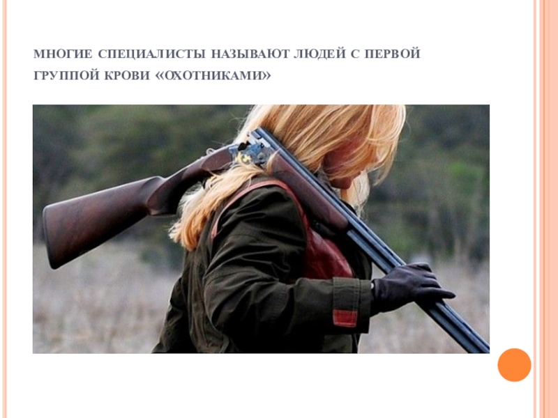 Слайд 35многие специалисты называют людей с первой группой крови «охотниками»