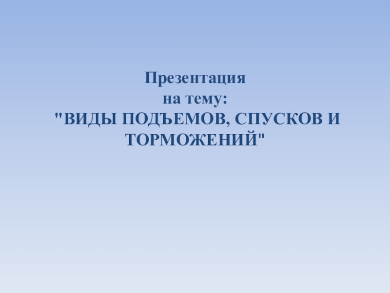 Слайд 1Презентация на тему: "ВИДЫ ПОДЪЕМОВ, СПУСКОВ И ТОРМОЖЕНИЙ"