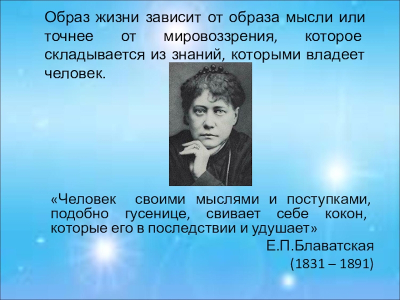 «Человек своими мыслями и поступками, подобно гусенице, свивает себе кокон, которые его в последствии и удушает»