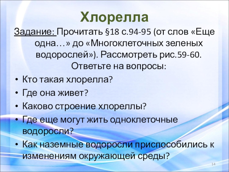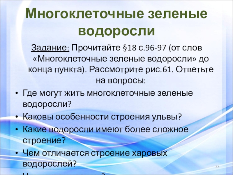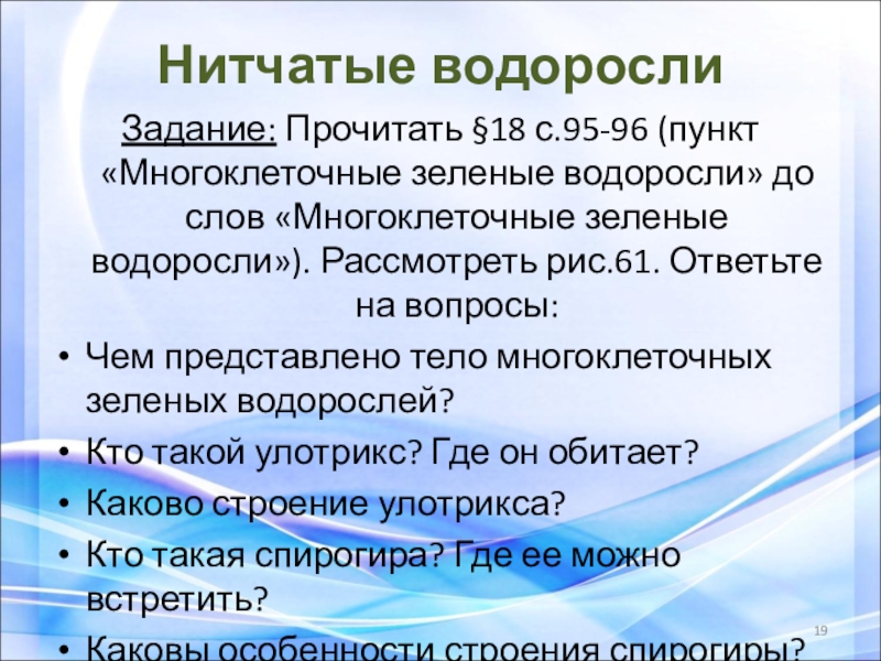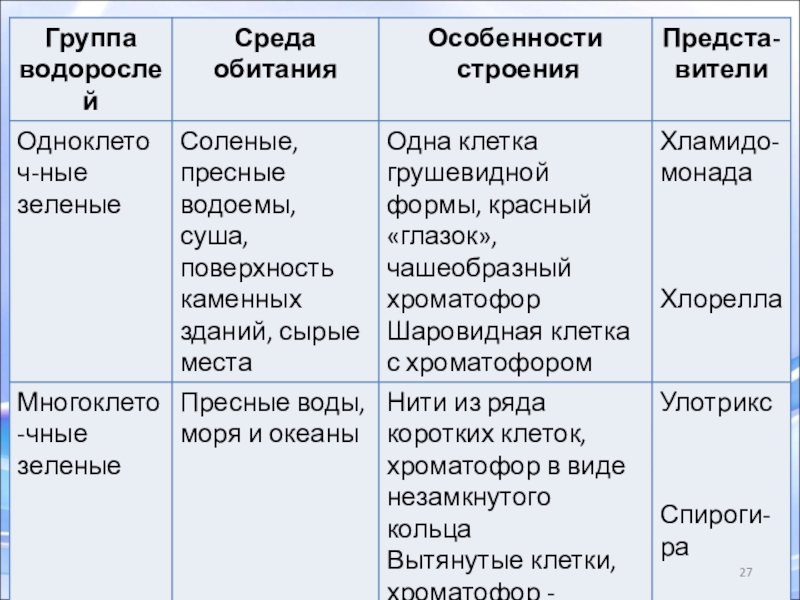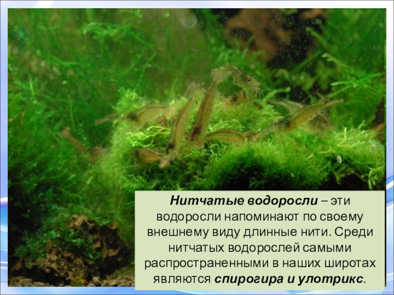 Улотрикс и спирогира распространены в стоячих или медленно текущих пресных водоемах.