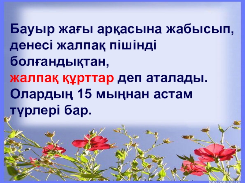 Слайд 1Жалпақ құрттар типіне жататын жәндіктердің негізгі ерекшеліктері