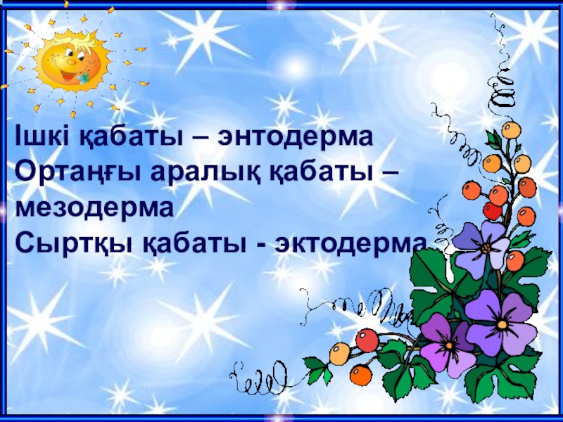Ішкі қабаты – энтодермаОртаңғы аралық қабаты – мезодермаСыртқы қабаты - эктодерма