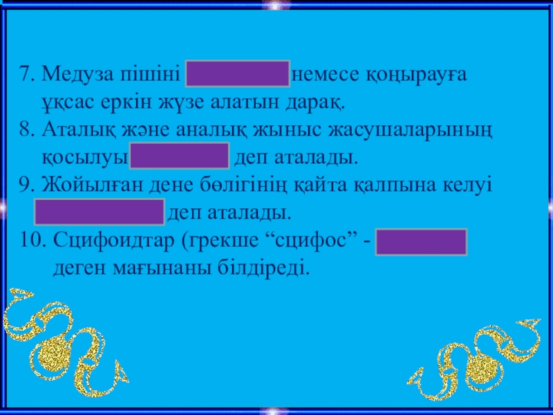 10. Сцифоидтар (грекше “сцифос” - табақша)