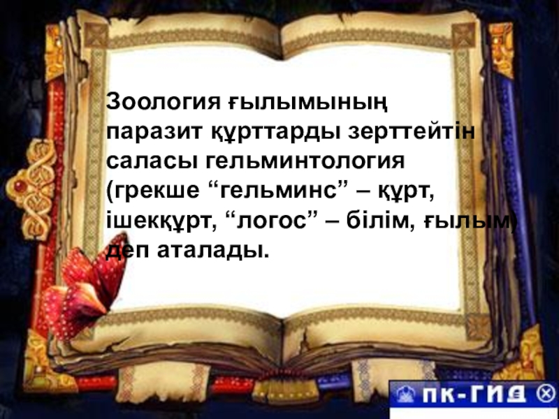 Зоология ғылымының паразит құрттарды зерттейтінсаласы гельминтология (грекше “гельминс” – құрт, ішекқұрт, “логос” – білім, ғылым) деп аталады.