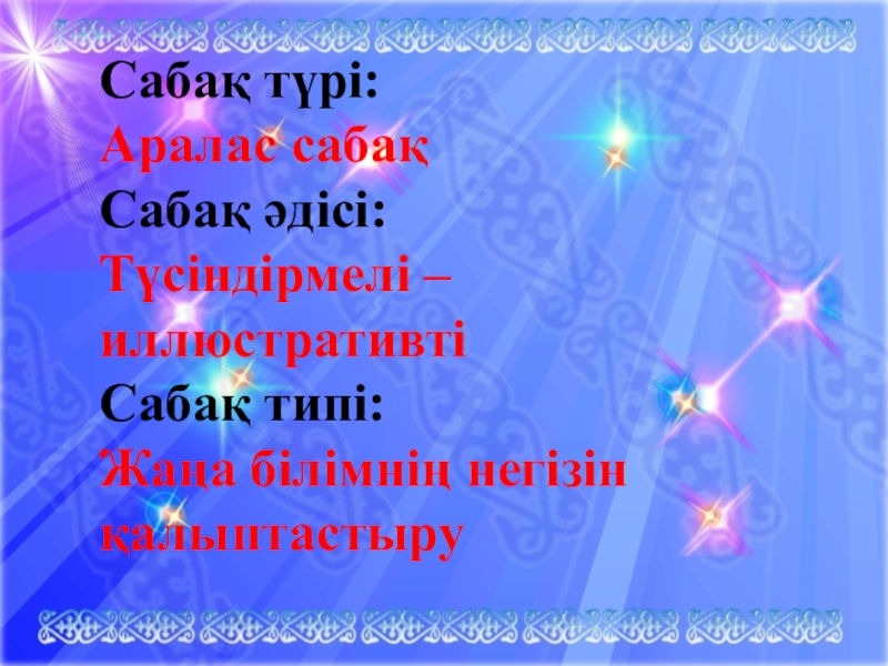 Сабақ түрі: Аралас сабақСабақ әдісі: Түсіндірмелі – иллюстративтіСабақ типі: Жаңа білімнің негізін қалыптастыру