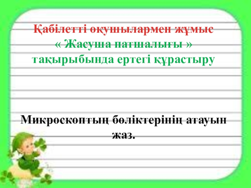 8.Микроскоптың үлкейтіп көрсететін әйнектері бар бөлігі.