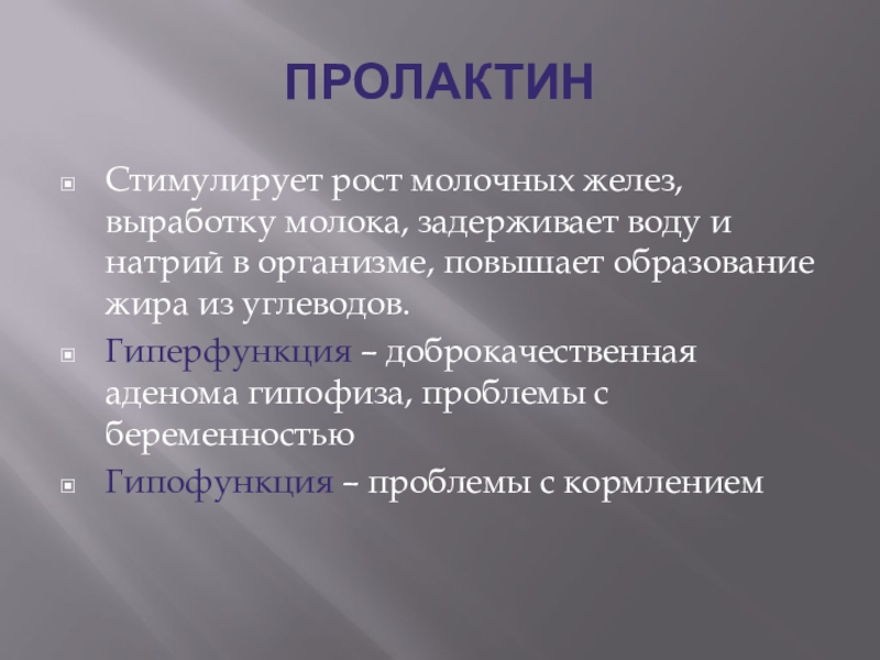 усиливает сокращение гладкой мускулатуры матки, стимулирует выведение молока. Гипофункция – слабость родовой деятельности