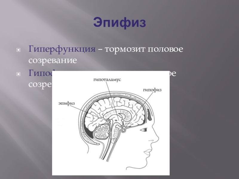 Гиперфункция – преждевременное половое созревание, развитие опухолей
