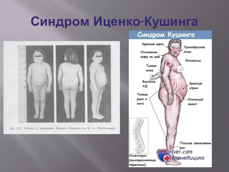 Гиперфункция – болезнь Иценко-Кушинга (гипертония, ожирение