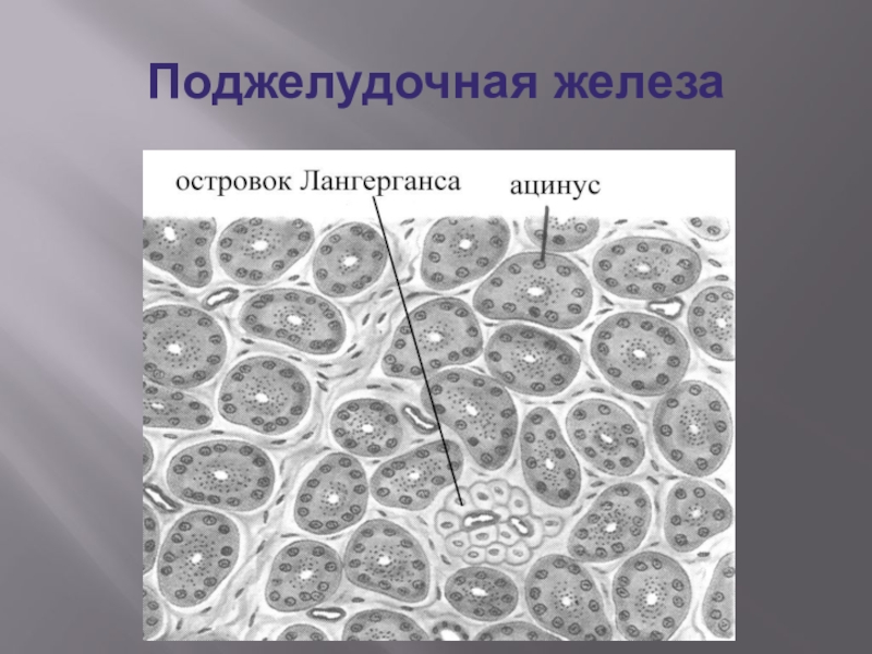 Слайд 29Поджелудочная железа (островки Лангерганса)