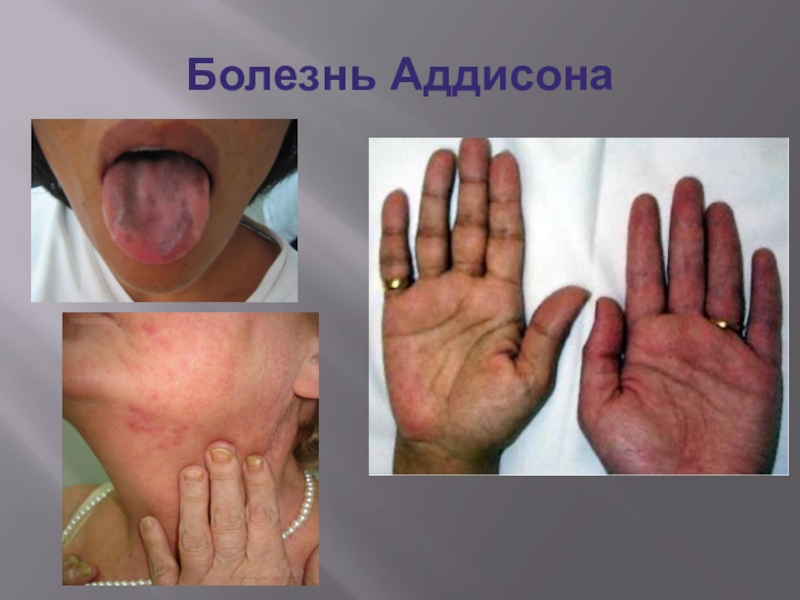 Гипофункция (кортизон) – болезнь Аддисона (бронзовый оттенок кожи, мышечная слабость, похудение