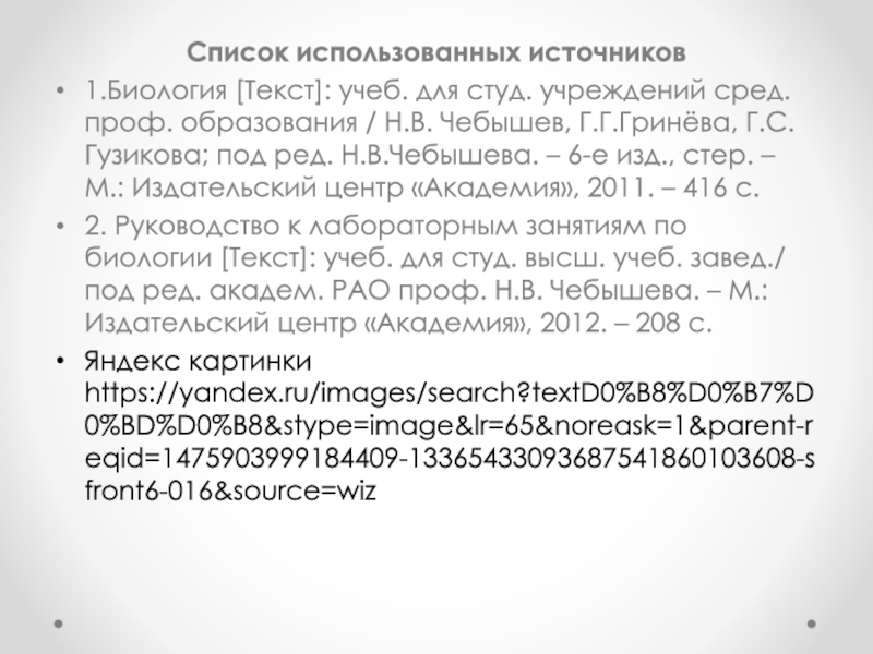 1.Биология [Текст]: учеб. для студ. учреждений сред. проф. образования