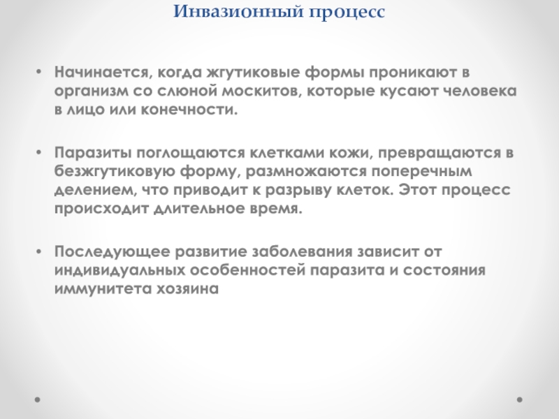 Начинается, когда жгутиковые формы проникают в организм со слюной москитов,