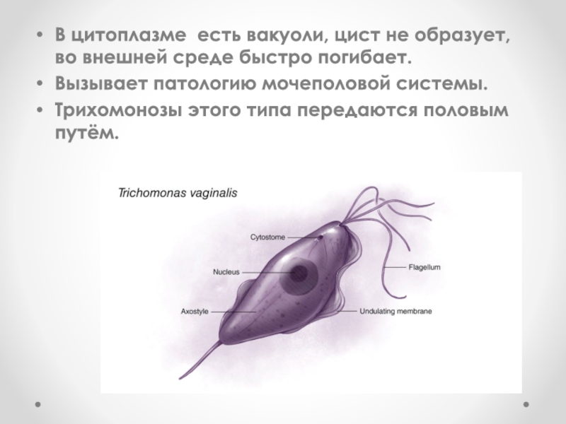 Слайд 18В цитоплазме есть вакуоли, цист не образует, во внешней среде быстро