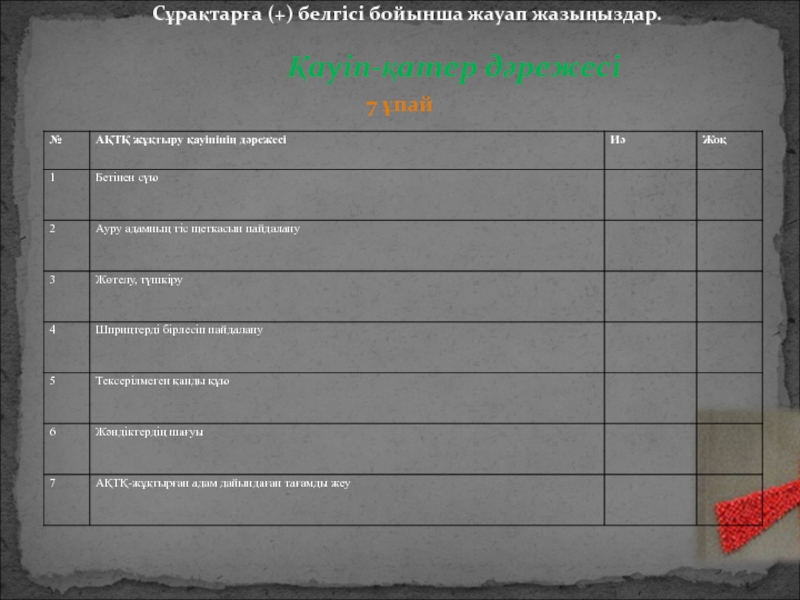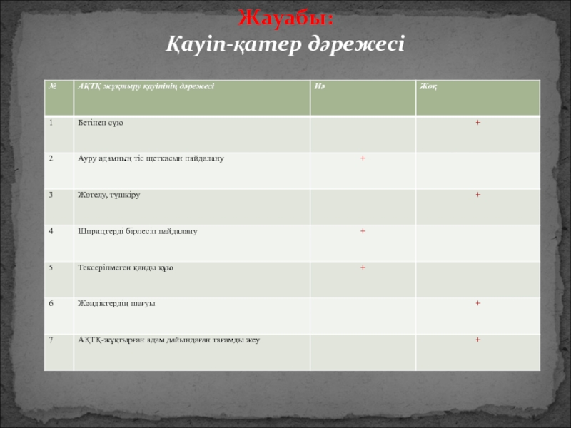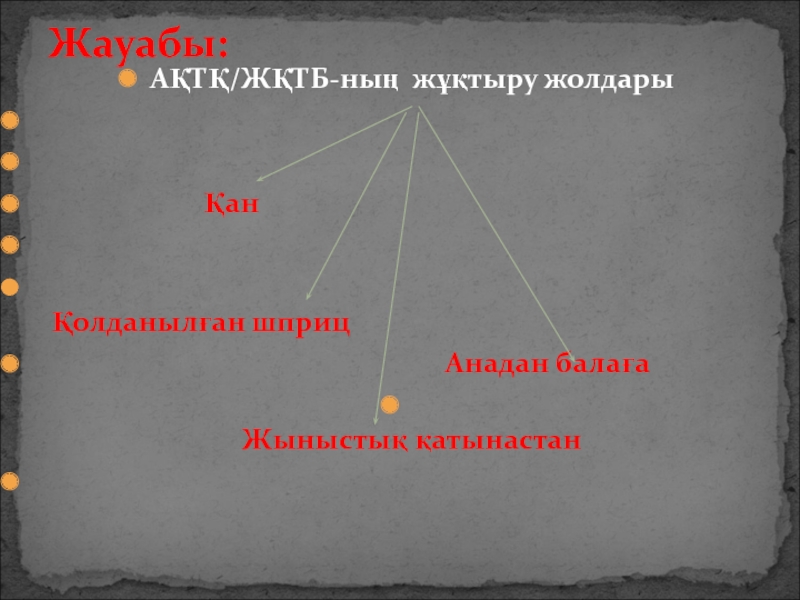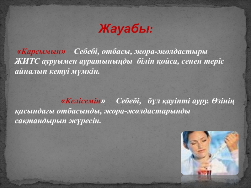 -Қанша өкінішті болғанымен, бүгінгі күні АҚТҚ-ын жоятын дәрілер жоқ. Қу АҚТҚ адамның ағзасында тыныш өмір сүріп, өзінің бар екендігін бірнеше жылдар бойы білдірмей, өз жұмысын бітіре береді. Қорғаныш әбден әлсіз болған кезде , адам ағзасы ешбір жаумен күресе алмай қалады. Сөйтіп, ЖҚТБ басталады. ЖҚТБ - жұқтырылған қорғаныш тапшылық белгісі