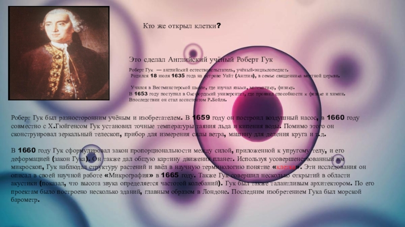 1.Цель:Узнать о том, кто открыл клетки и с помощью чего он это сделал.
