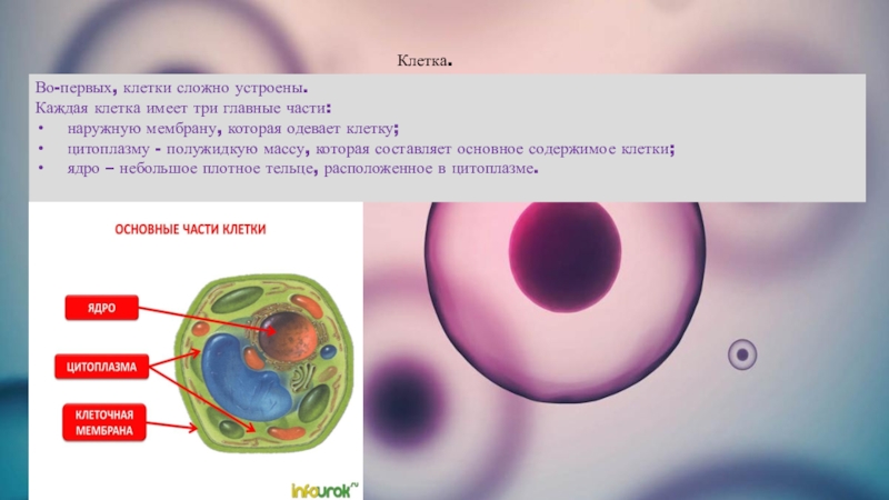 ядро – небольшое плотное тельце, расположенное в цитоплазме.
