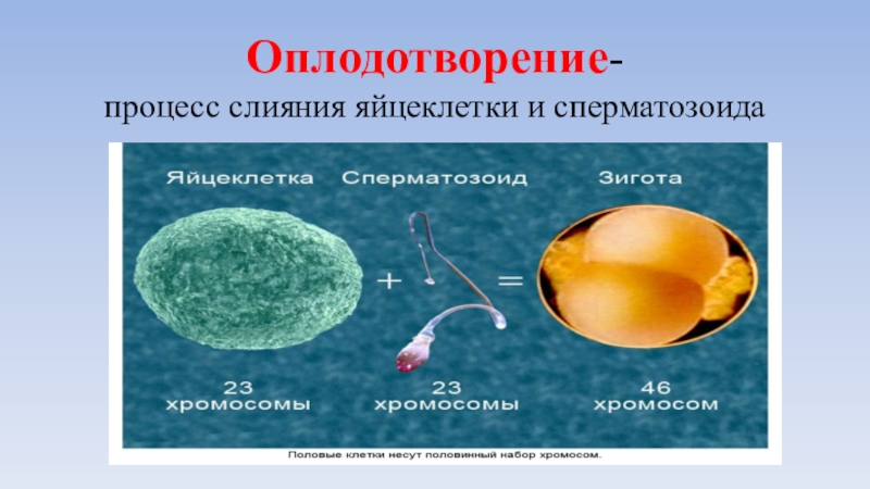Слайд 10Оплодотворение- процесс слияния яйцеклетки и сперматозоида