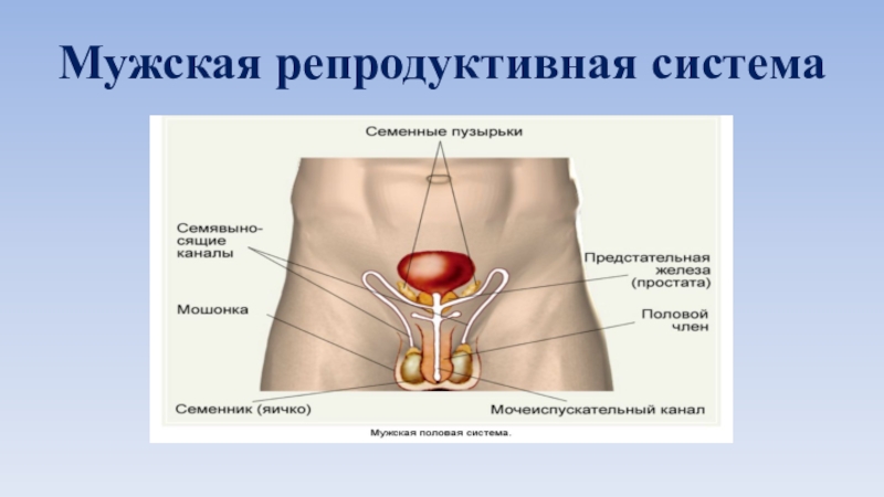 Мужские половые железы- семенники (яички)Мужские половые клетки- сперматозоидыДля созревания сперматозоидов необходима температура 35º