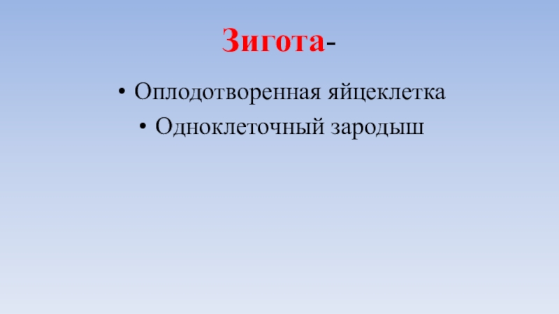 Зигота-Оплодотворенная яйцеклеткаОдноклеточный зародыш