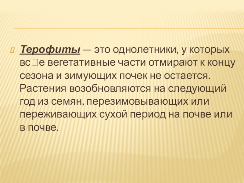Слайд 12Терофиты — это однолетники, у которых все вегетативные части отмирают к