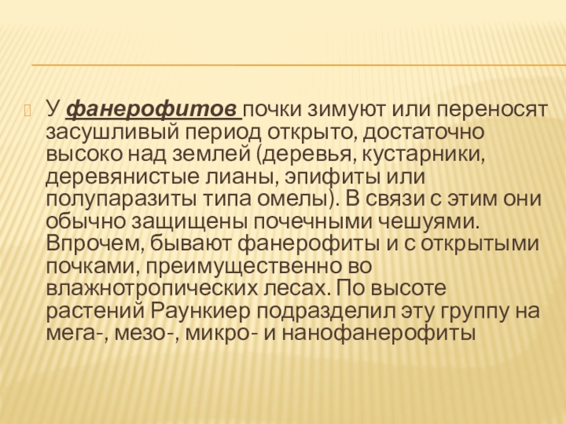Слайд 8У фанерофитов почки зимуют или переносят засушливый период открыто, достаточно высоко