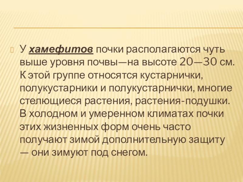 Слайд 9У хамефитов почки располагаются чуть выше уровня почвы—на высоте 20—30 см.