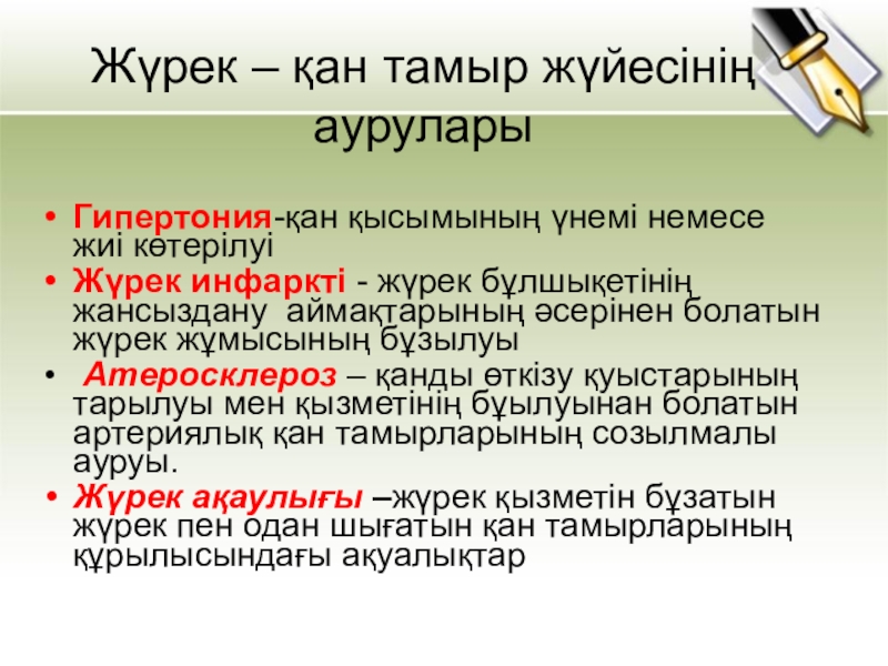 Слайд 7Жүрек – қан тамыр жүйесінің аурулары