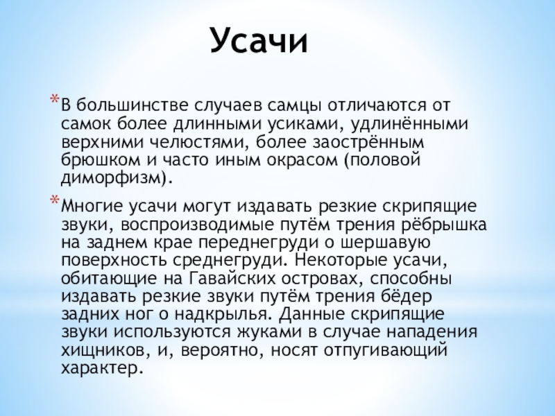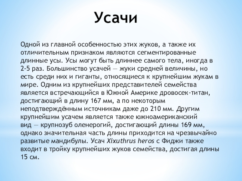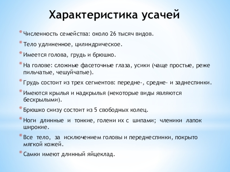 Слайд 3Характеристика усачей