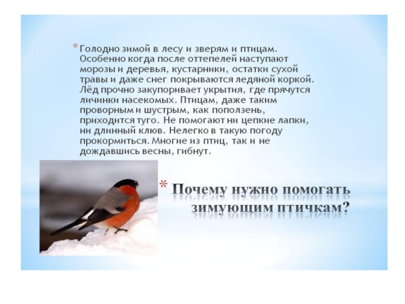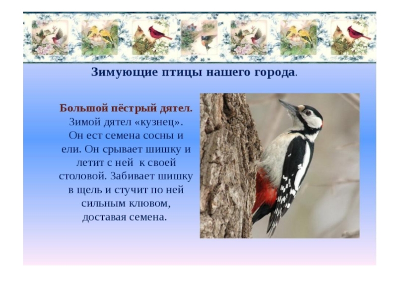 Презентация, доклад по биологии на тему Зимующие птицы Смоленской области (7 класс)