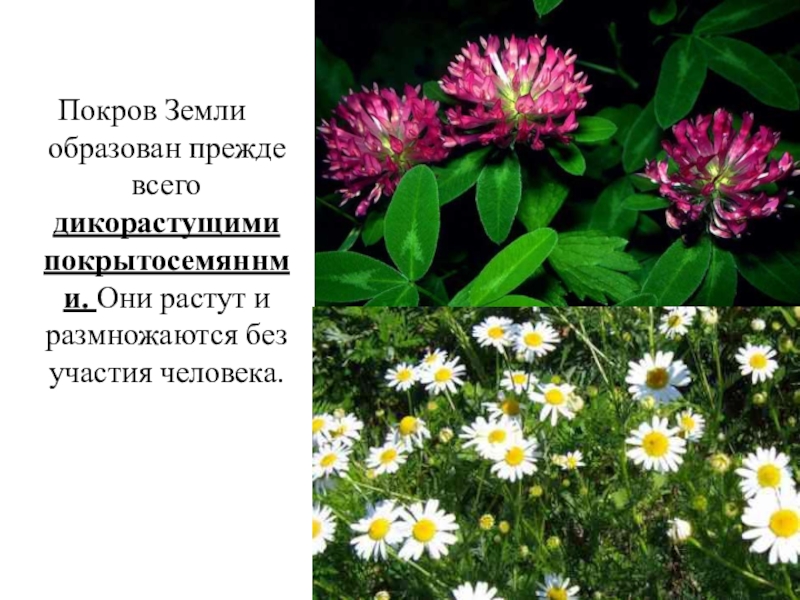 Покров Земли образован прежде всего дикорастущими покрытосемяннми. Они растут и размножаются