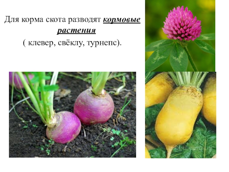 Для корма скота разводят кормовые растения ( клевер, свёклу, турнепс).