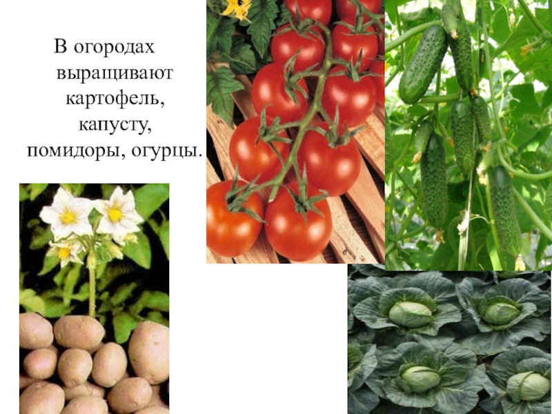 В огородах выращивают картофель, капусту, помидоры, огурцы.