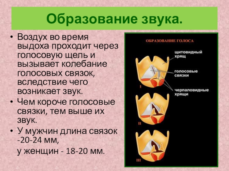 Воздух во время выдоха проходит через голосовую щель и вызывает
