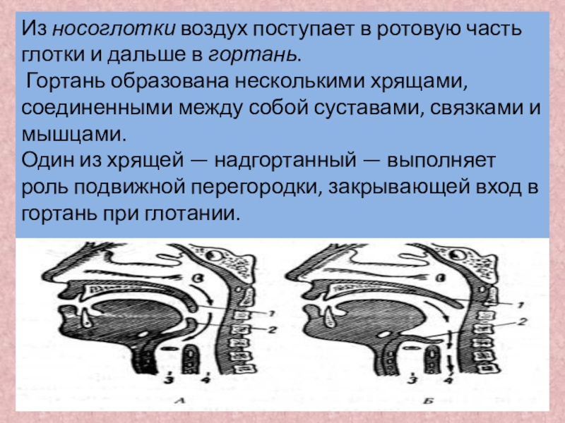 Слайд 9Из носоглотки воздух поступает в ротовую часть глотки и дальше в гортань.