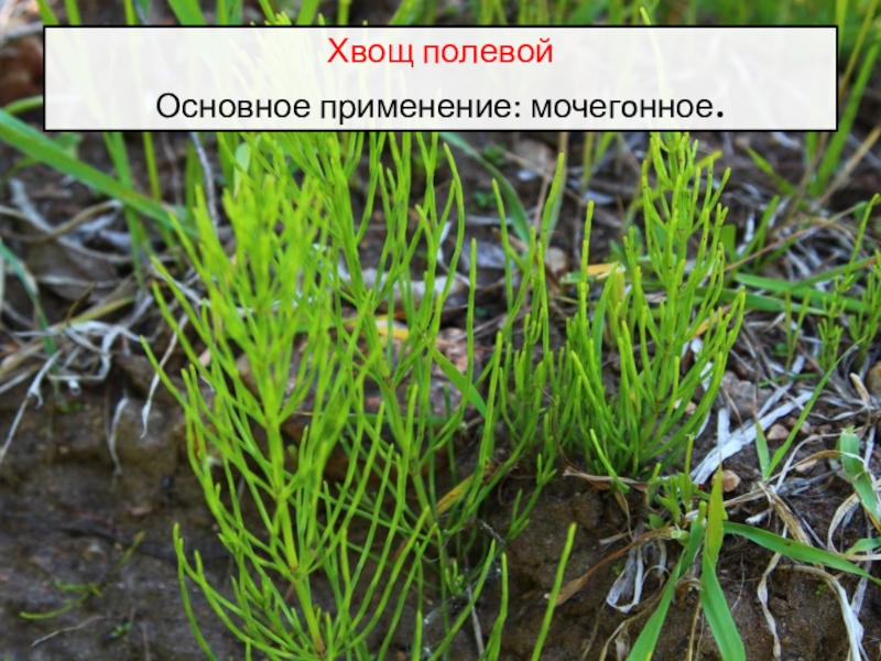 Слайд 16Хвощ полевой Основное применение: мочегoнное.