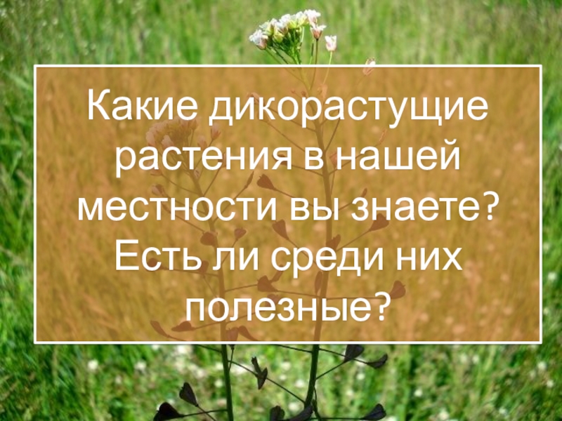 Слайд 7Какие дикорастущие растения в нашей местности вы знаете? Есть ли среди