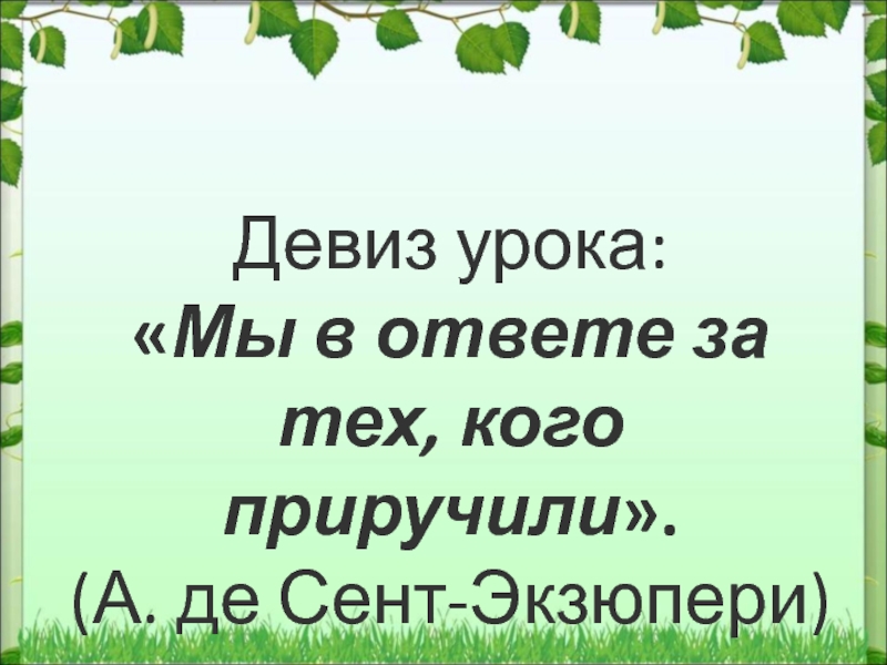 Девиз урока: «Мы в ответе за тех, кого приручили». (А. де Сент-Экзюпери)