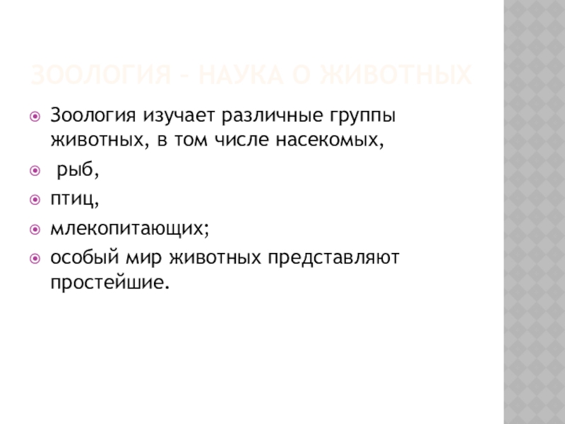 Слайд 7ЗООЛОГИЯ – НАУКА О ЖИВОТНЫХ