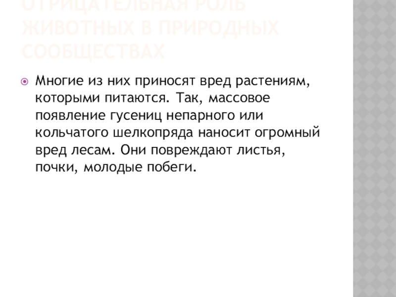 Слайд 24ОТРИЦАТЕЛЬНАЯ РОЛЬ ЖИВОТНЫХ В ПРИРОДНЫХ СООБЩЕСТВАХ