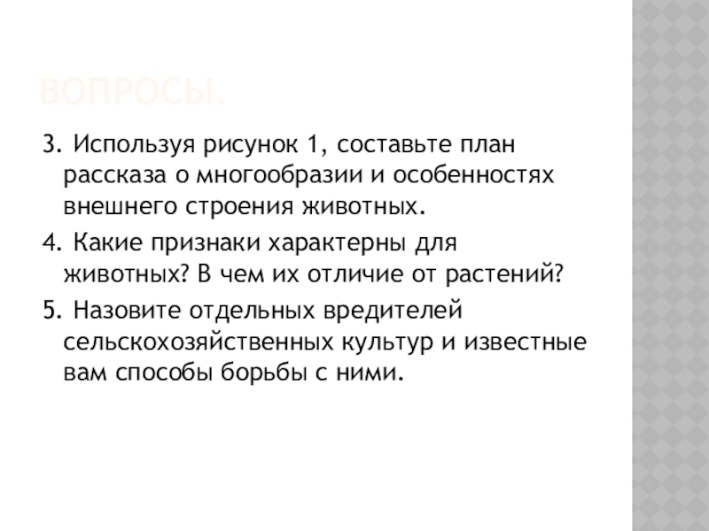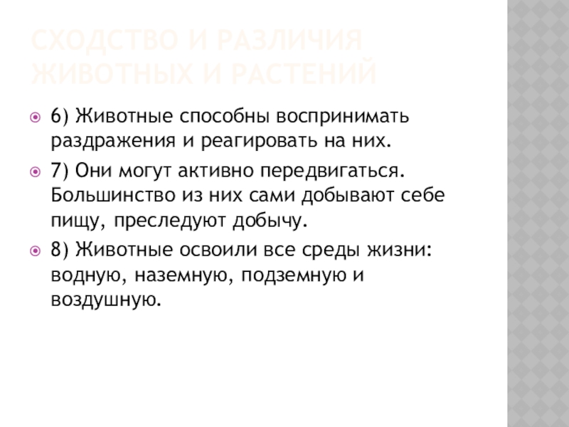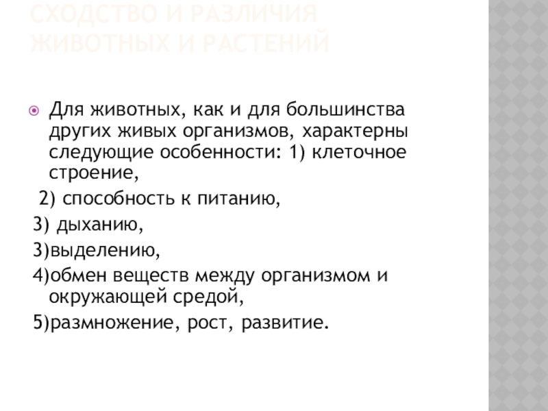 4. Какие признаки характерны для животных? В чем их отличие от растений?