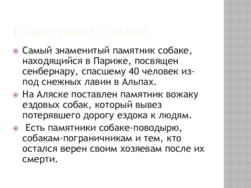 Слайд 30ПАМЯТНИКИ СОБАКЕ