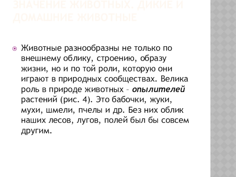 Слайд 20ЗНАЧЕНИЕ ЖИВОТНЫХ. ДИКИЕ И ДОМАШНИЕ ЖИВОТНЫЕ