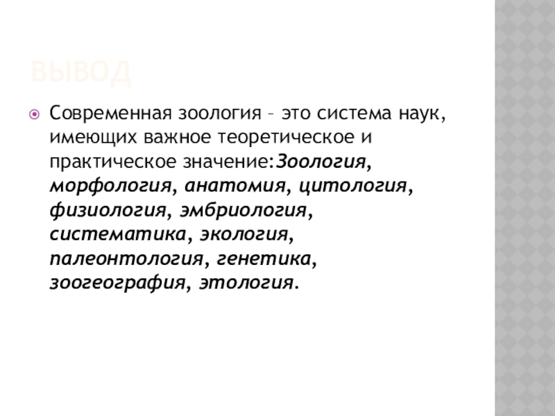 Современная зоология – это система наук, имеющих важное теоретическое и практическое значение:Зоология,