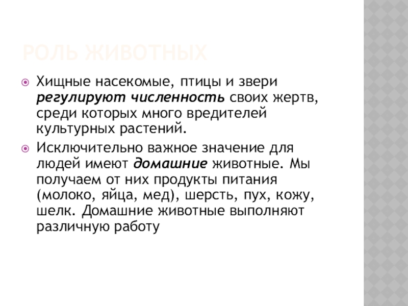 Слайд 27РОЛЬ ЖИВОТНЫХ