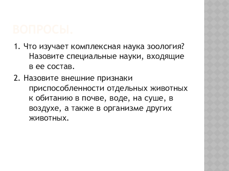 1. Что изучает комплексная наука зоология? Назовите специальные науки, входящие в