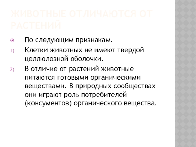Слайд 13ЖИВОТНЫЕ ОТЛИЧАЮТСЯ ОТ РАСТЕНИЙ