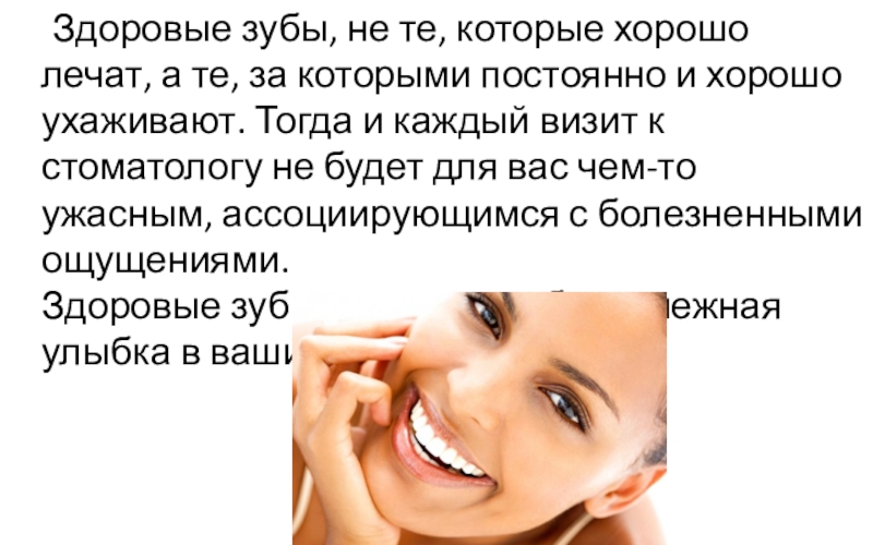 Слайд 23 Здоровые зубы, не те, которые хорошо лечат, а те, за которыми