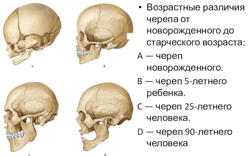 Слайд 8Возрастные различия черепа от новорожденного до старческого возраста: