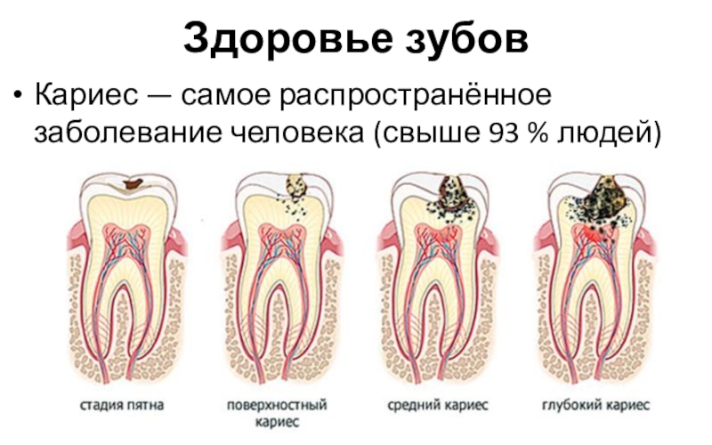 Кариес — самое распространённое заболевание человека (свыше 93 % людей)